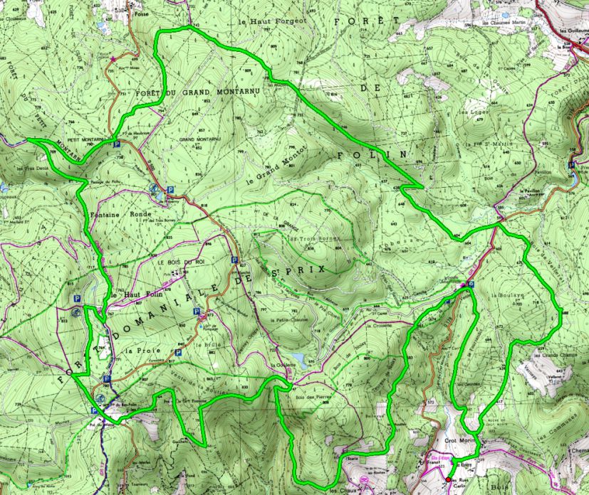Crot Morin, vellerey, le pavillon, les maçons, le petit montarnu, le passage du pichu, le pré du massey, les guichets, l'avion, l'écarie, la croisette, crot morin , la riviere